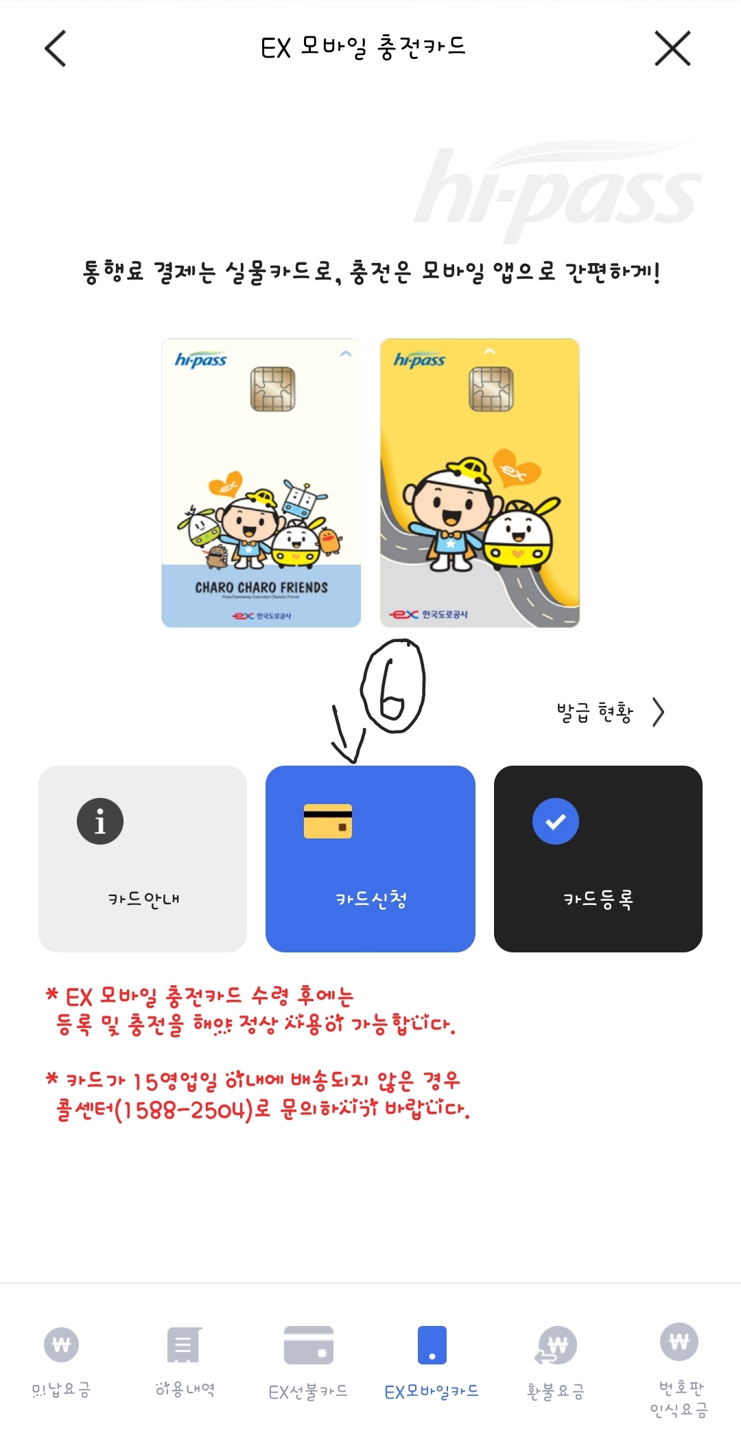 폰 어플로 그외 미납요금 조회 및 납부 EX카드 충전, 환불 통행료도 받으실 수 있습니다.